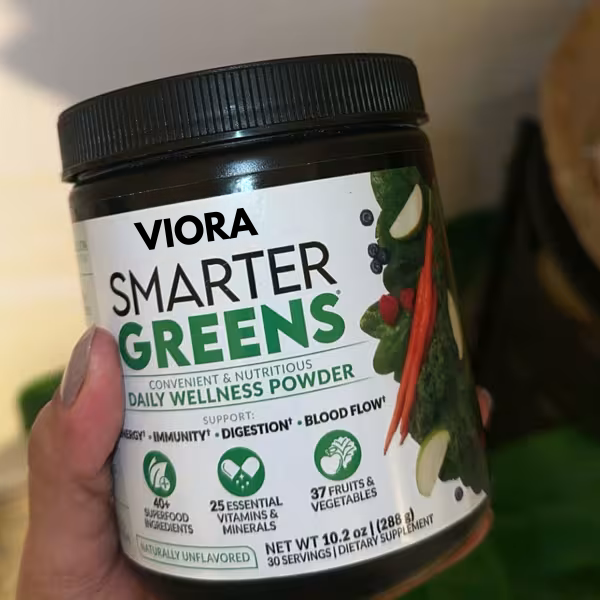 Smarter Greens Daily Wellness Powder is packed with over 40 natural superfoods, probiotics, and prebiotics to help support digestion, reduce bloating, and boost your energy. No added sugars, sweeteners, or preservatives—just the purest ingredients to help you feel your best.